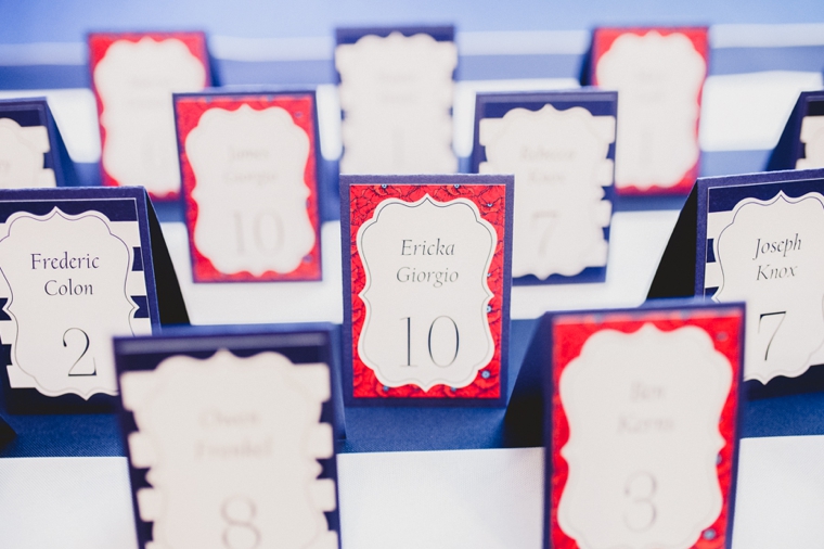 Sarah and Steven topped all the past and future Valentine’s Days they would spend together this year. Why? Because this year, they tied the knot at the luxurious Grand Bohemian Hotel, of course! To complement their white and navy winter wedding theme, we created custom navy and rose gold pocket wedding invitations. Their spectacular rose gold invitation folders were foil-stamped in navy foil on both the front cover and the pocket to create a truly sensational invitation. For their walk down the aisle, we created a gorgeous aisle sign, complete with navy details and over 20 hand-placed Swarovski crystals to make it sparkle and shine. At the reception, we created coordinating day-of paper goods, including a navy seating chart, displayed in a mirrored frame by An Affair to Remember, and round custom pearlized blue menus, printed in white ink and personalized with each guest’s name and entree selection, then adorned with crystals. In a twist to their typical dessert table, Two Sweets Bake Shop delivered a selection of desserts to each table at the reception, accompanied by a small dessert menu to help guest navigate the individualized display.