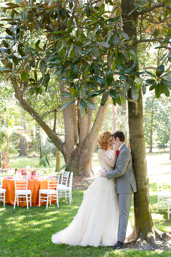 Recently featured on Wedding Chicks, this truly unique shoot depicts what it would be like to be wedded in a garden wonderland. Forget small splashes of color, this shoot embraces bright, vivacious hues of popping pinks and outrageous oranges to make a dazzling kaleidoscope on the greenscape of the Florida Federation of Garden Clubs. Perfectly planned by Mobella Events, this shoot was captured by the talented Rachel V Photography.