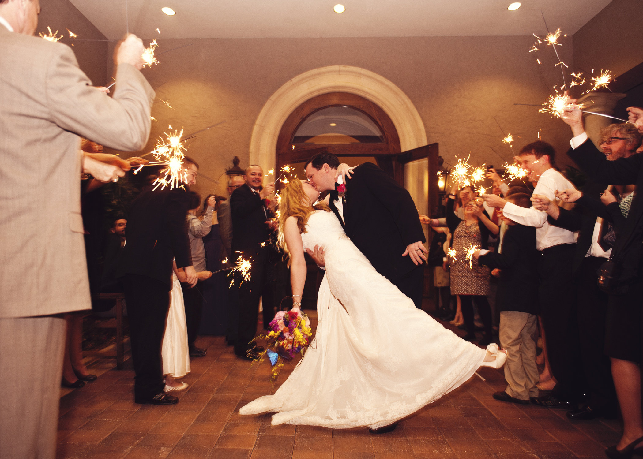 The exquisite floors of the Wyndham Resort International Drive were the inspiration for the entire shoot! The oversized flowers and intense hues gave birth to the concept for “Red, White and Bloom” and inspired the rest of the decor. Over The Top Rental Linens created the perfect homage to Americana with the dynamic striped fabric background for the ceremony. We also love the eye-popping, patriotic floral arrangements by Atmospheres Floral and Décor which used a veritable garden of roses, tulips, and ranunculus.